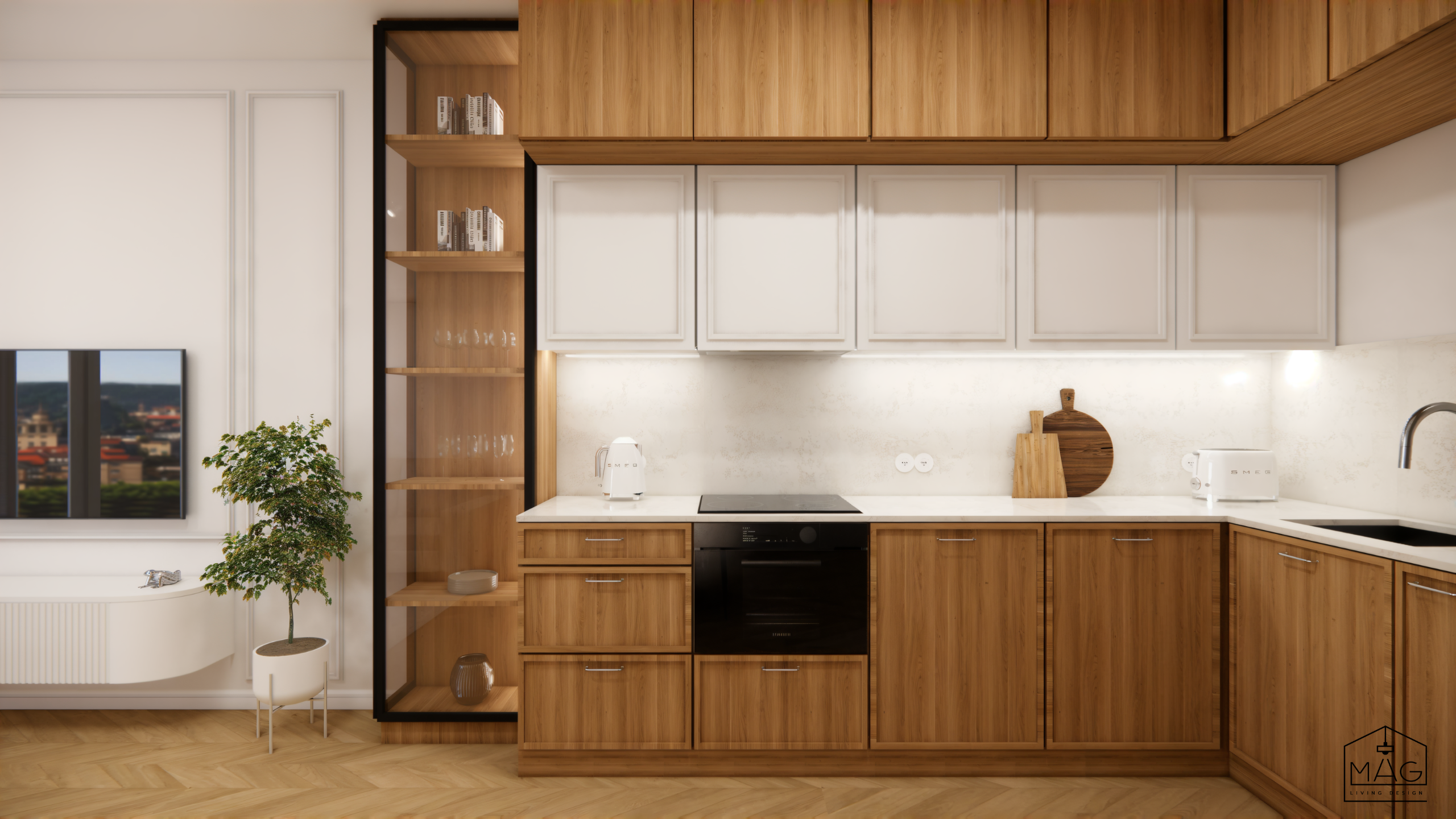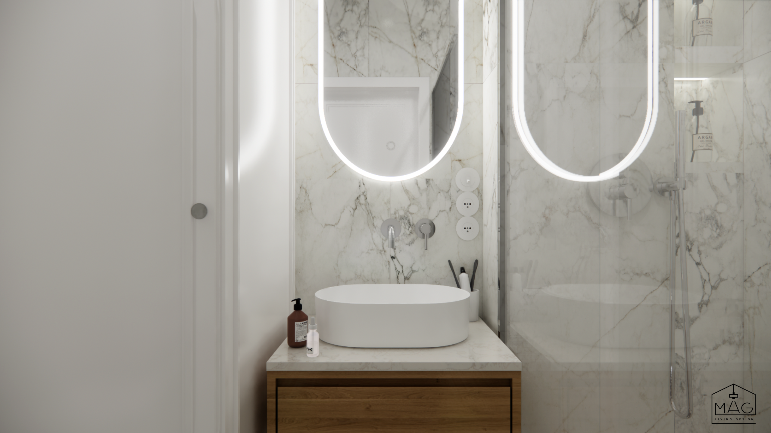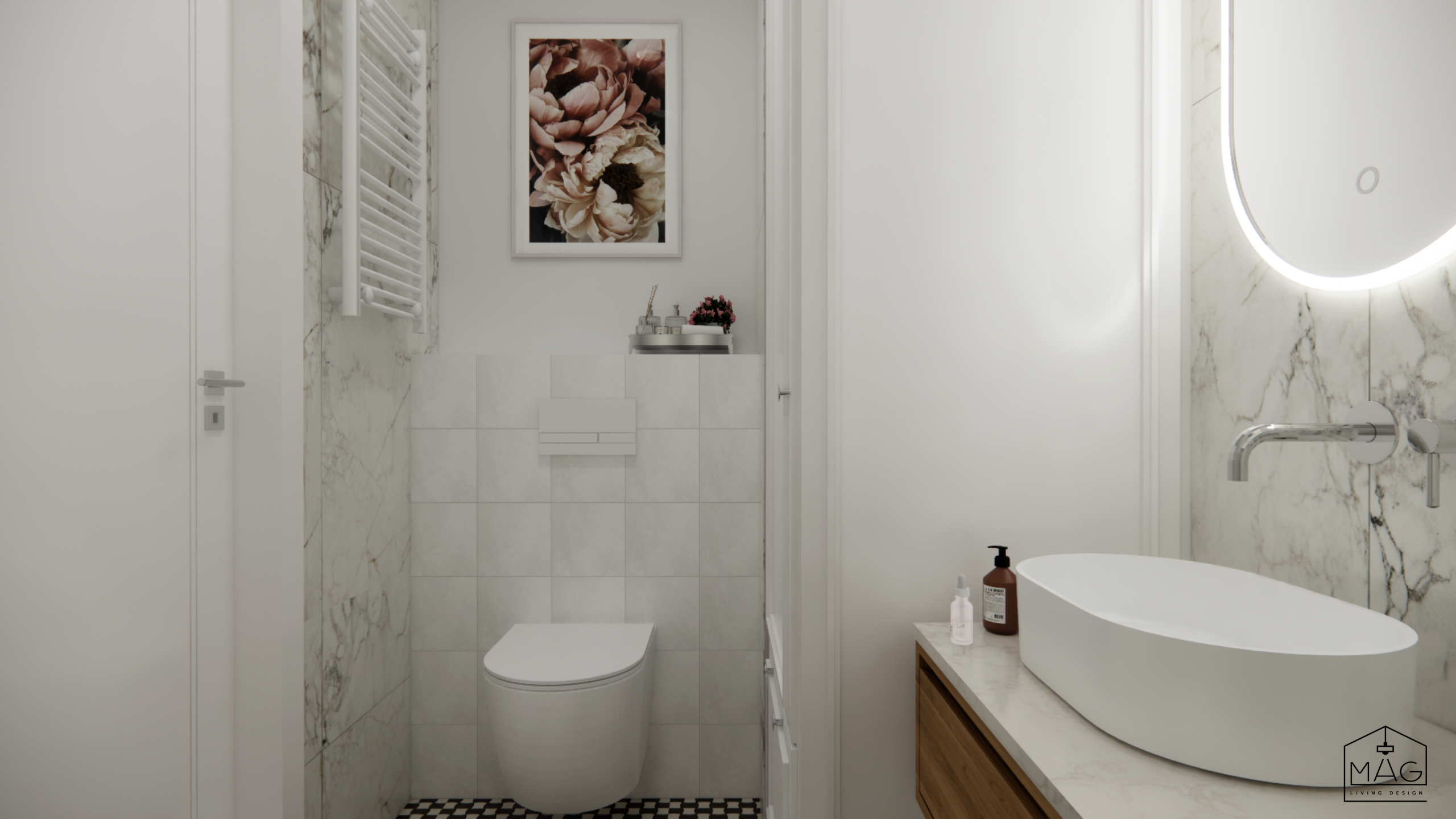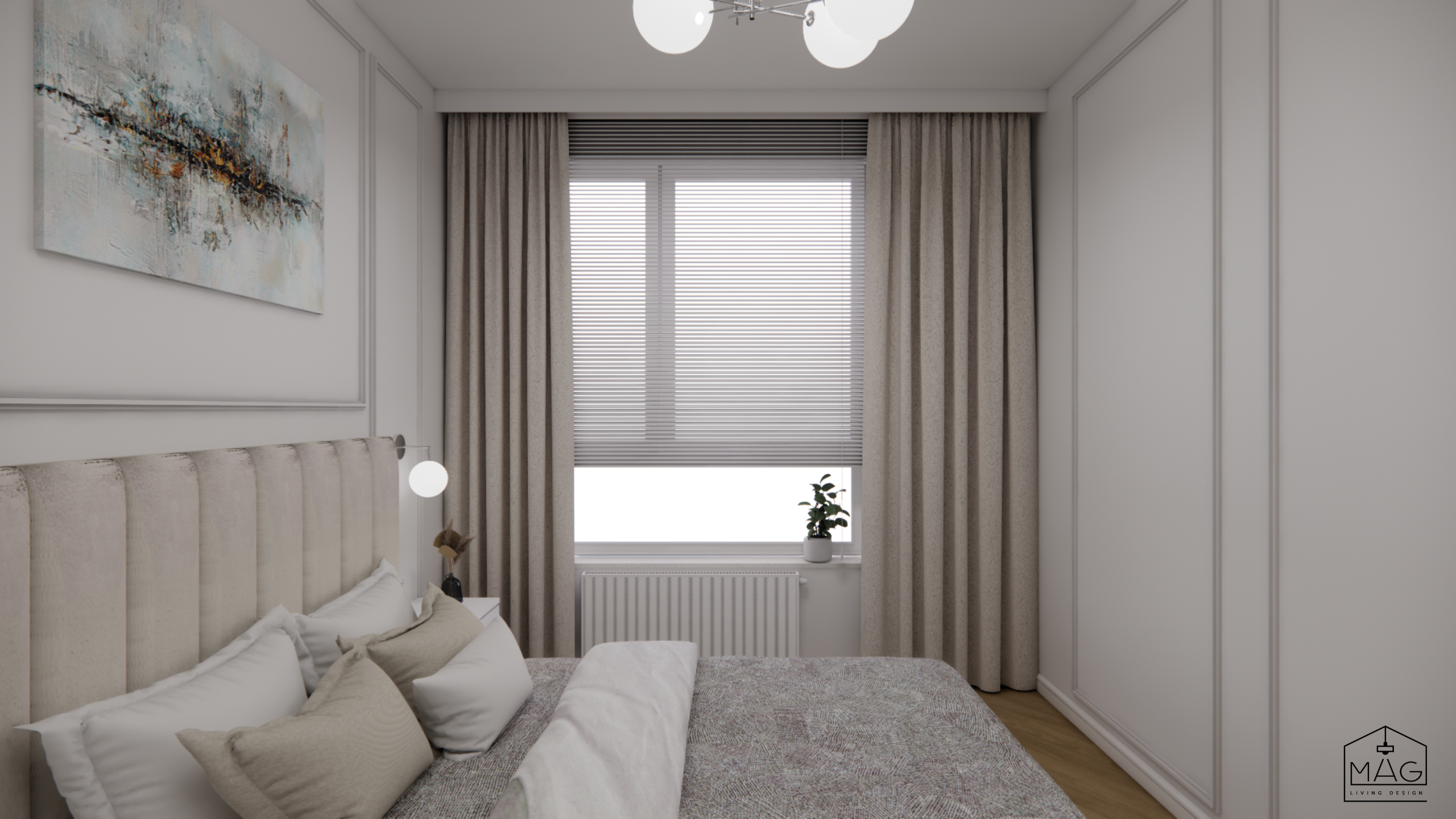 Stylowe mieszkanie na Mokotowie (41 m²) zaprojektowane z myślą o wynajmie dla wymagającego klienta. Elegancka estetyka modern classic łączy ponadczasową klasę z funkcjonalnością, a wysokiej jakości materiały gwarantują trwałość i komfort. Jasna paleta barw, dekoracyjne detale i starannie dobrane oświetlenie tworzą wnętrze pełne harmonii i wyrafinowanego stylu, idealne dla najemcy premium.